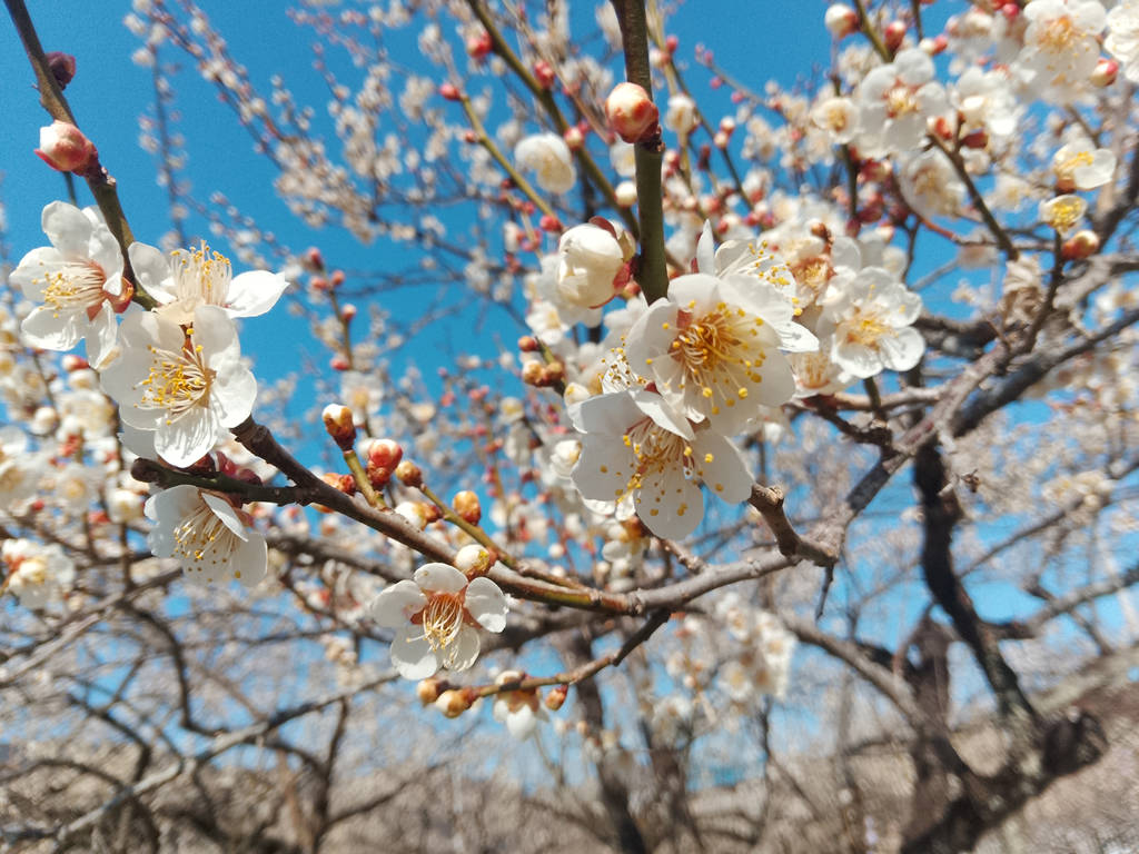 ただ、越生梅林はどこでも順光になってしまうので写真はイマイチです。私のスマホは絞りもNDも付いてないのでハレーションがひどいですしね。