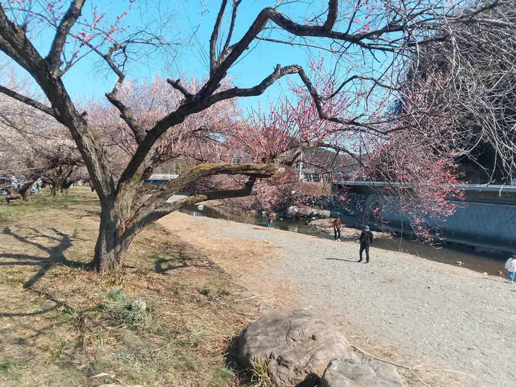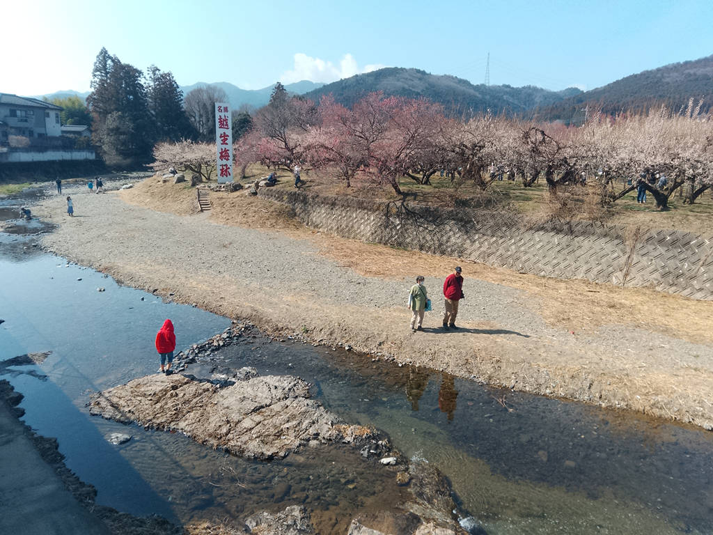 実はこの越生梅林は越辺川の河辺に位置していまして、河原にも降りられます。