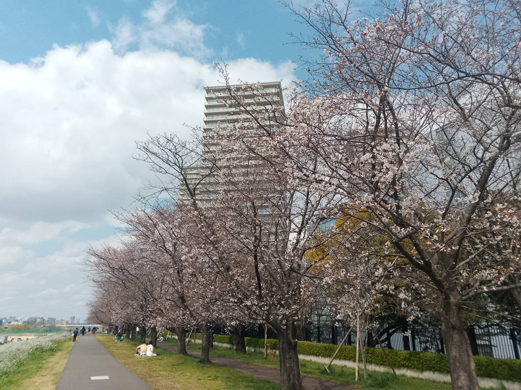 これはガス橋のあたり。桜が半開で、お花見のかたがたで賑わっていました。