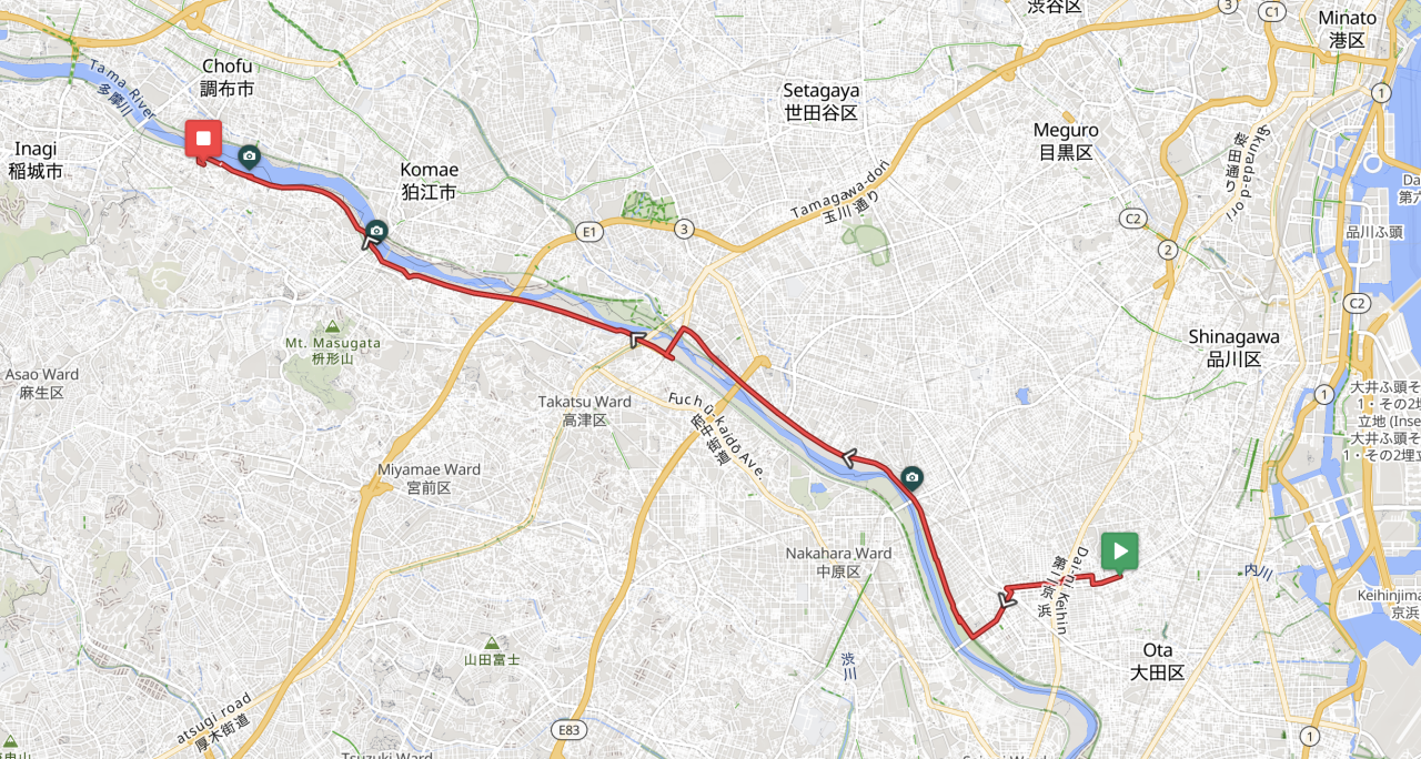ガス橋〜稲田堤で合計21kmほどのサイクリングになりました。
