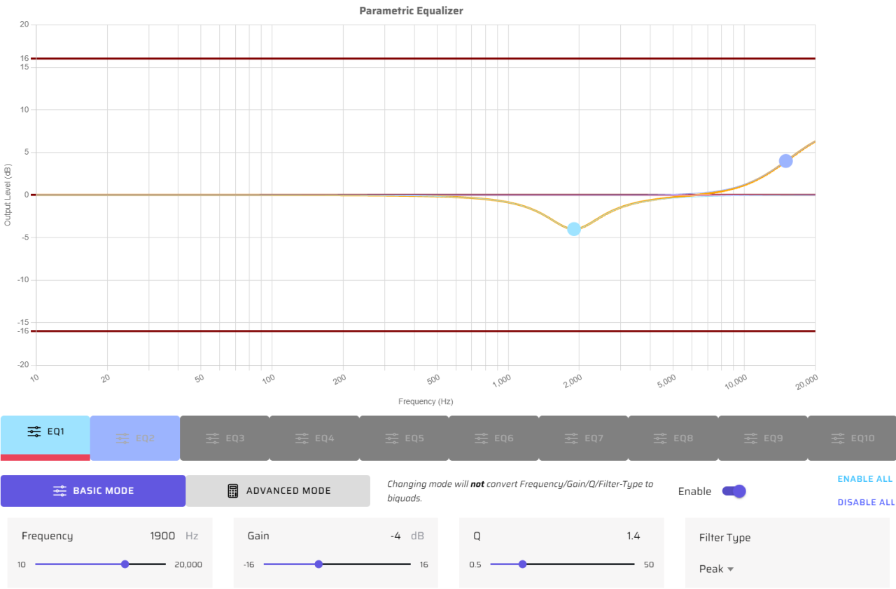 • Notch : Fc= 1900Hz, Gain= -4dB, Q= 1.4