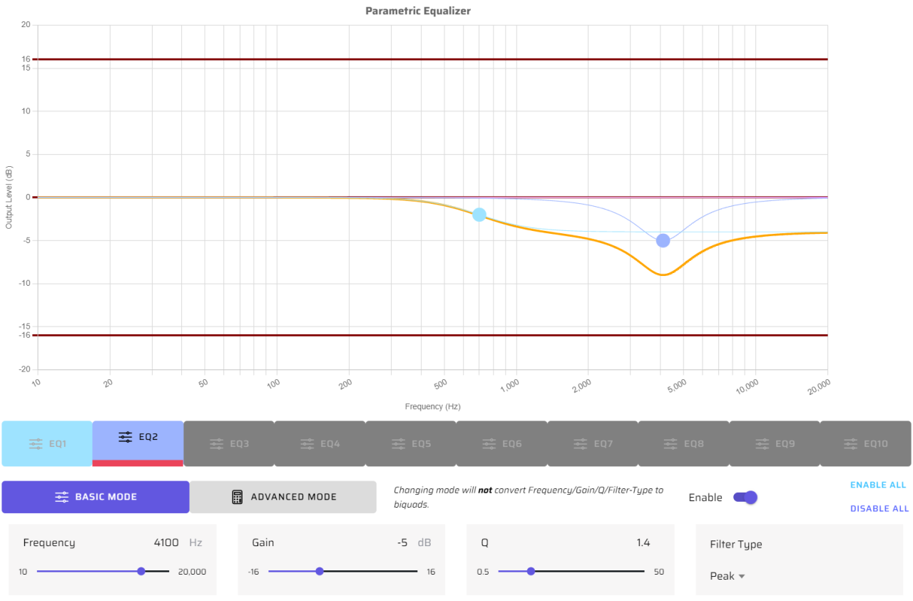 • Notch : Fc= 4100Hz, Gain= -5dB, Q= 1.4
