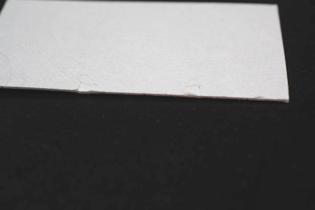 ボール紙に糸を通します。いかに糸が見づらいか、判りますね(笑)