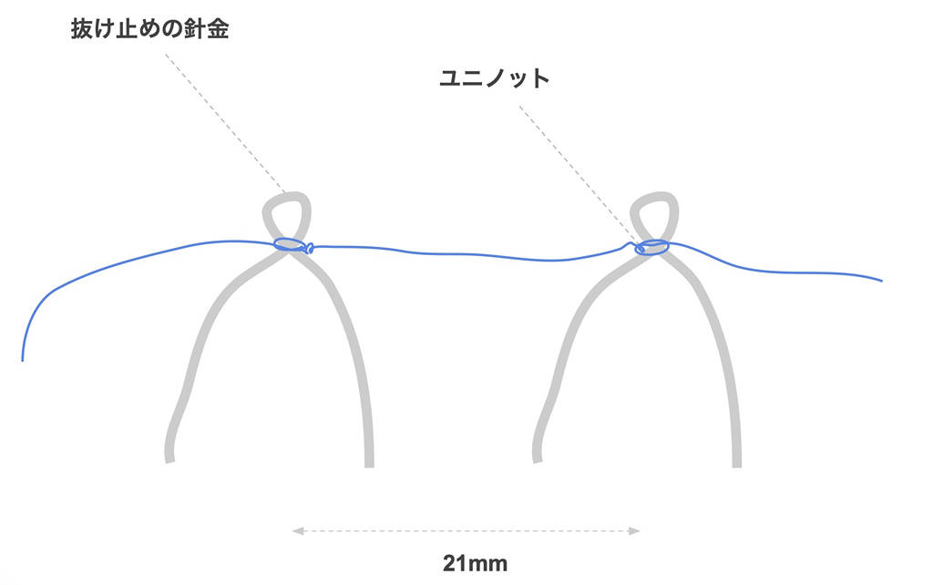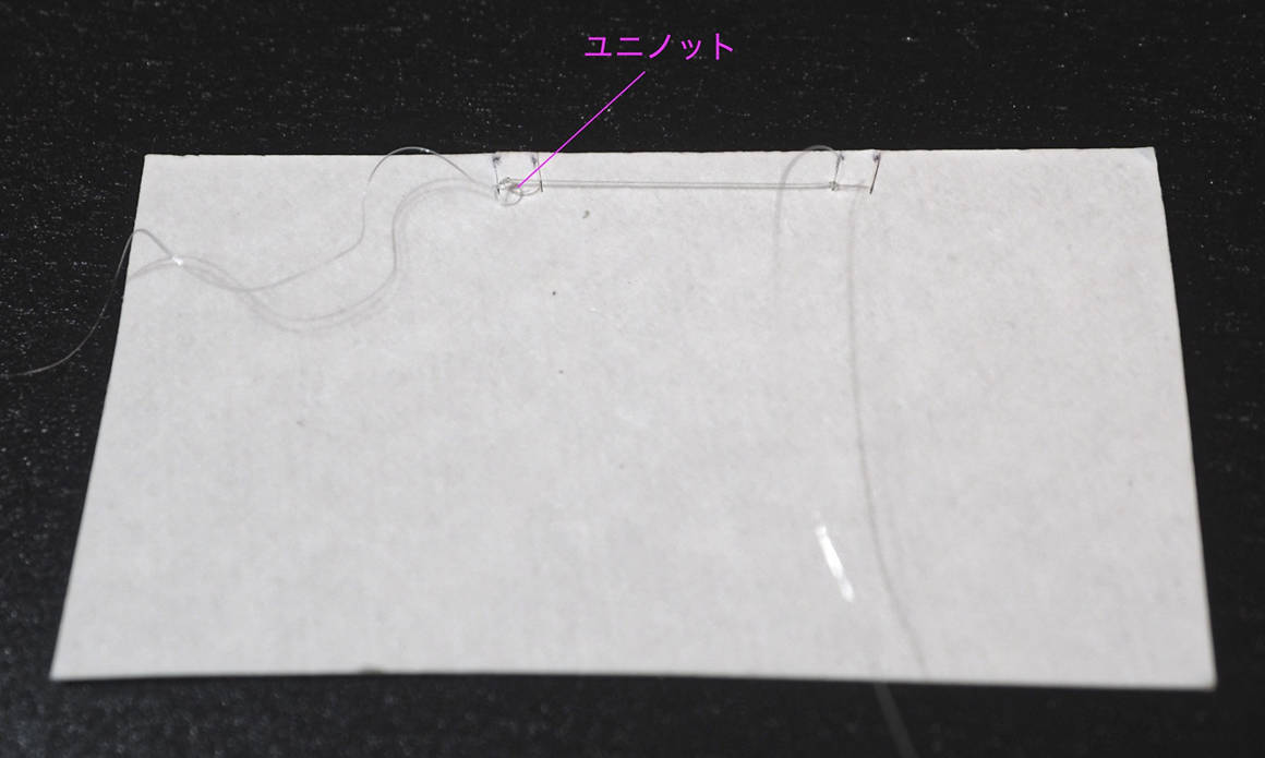 今回はユニ・ノット (Uni Knot) という結び方を採用しました。引っ張ると、結び目が自然と絞まってしまう結線です。
