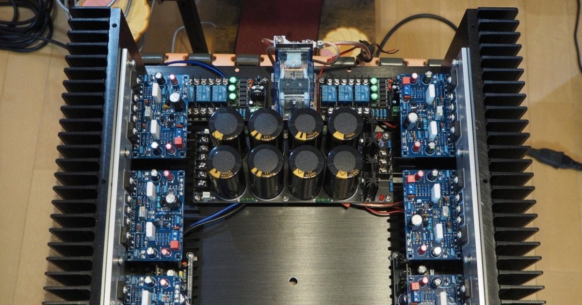 6chアンプ (22) 放熱フィン取付と保護リレーテスト
