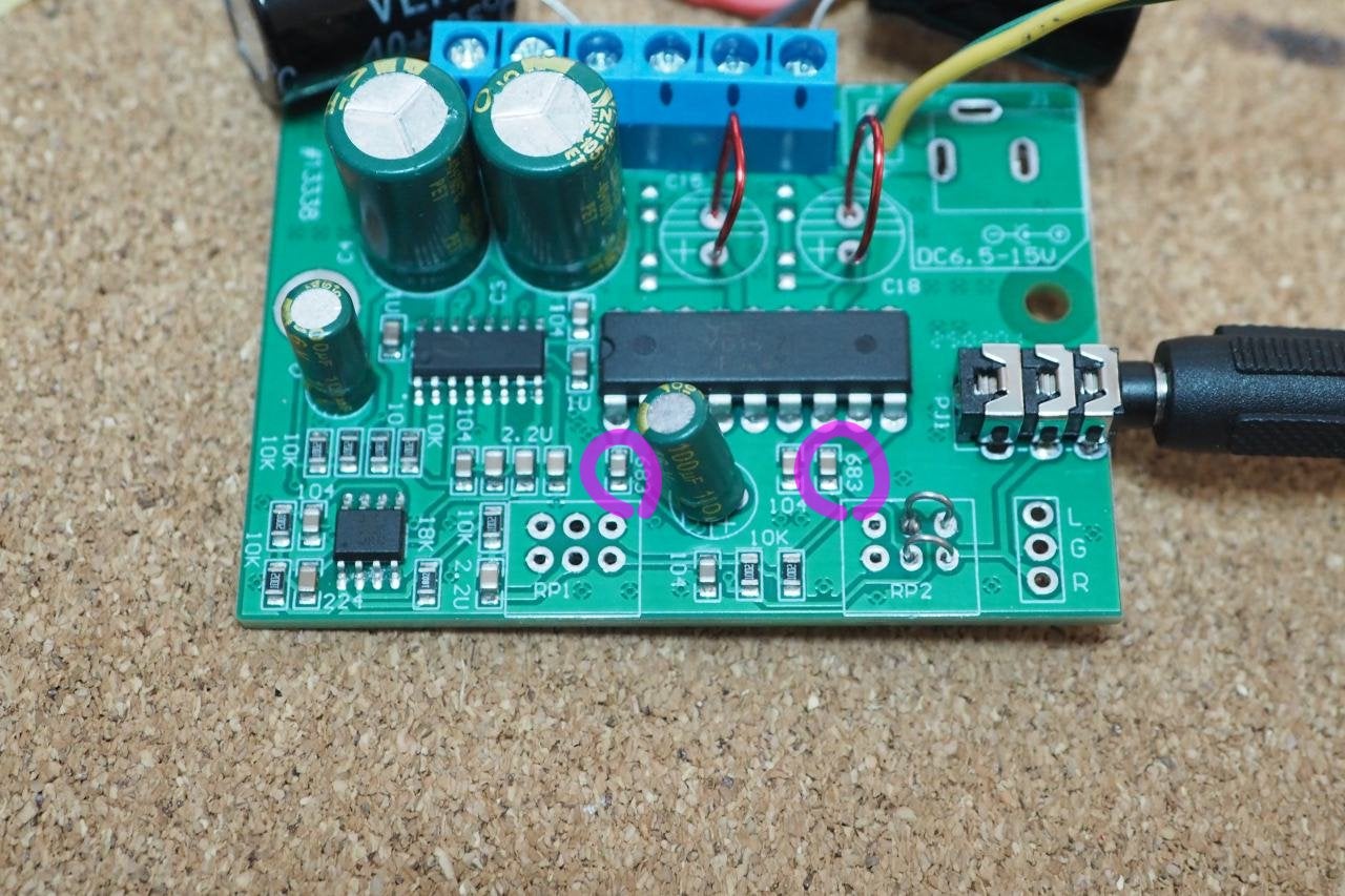 右側の104(0.1uF)は前回ほったらかしにしていたパーツですが、明らかに悪さをする部品なので撤去しました。