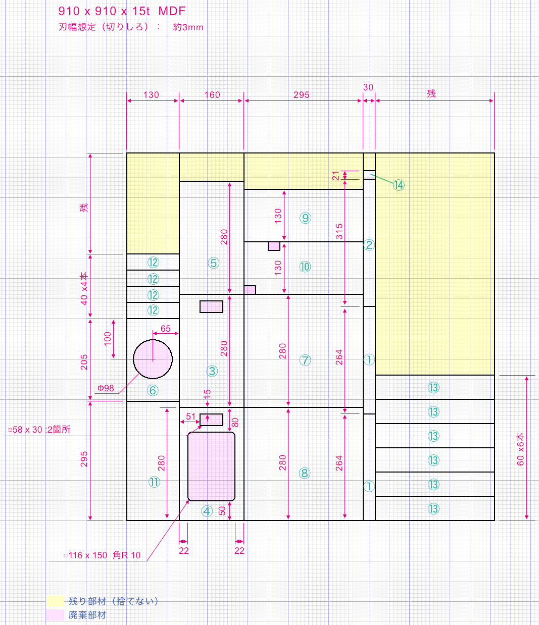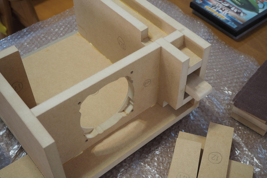小さいから設計や設計整合は大変です。それでも小さいことが幸いして、サブロクのMDFたった1枚で全ての部材が取れ、まだ余ります。