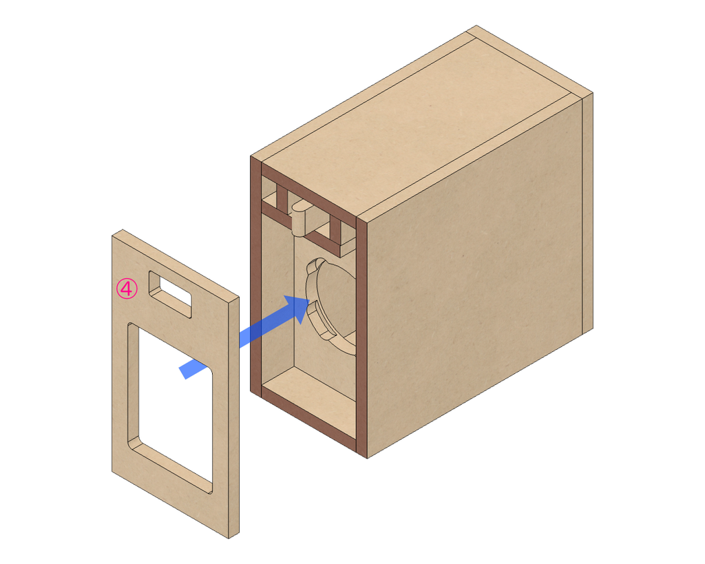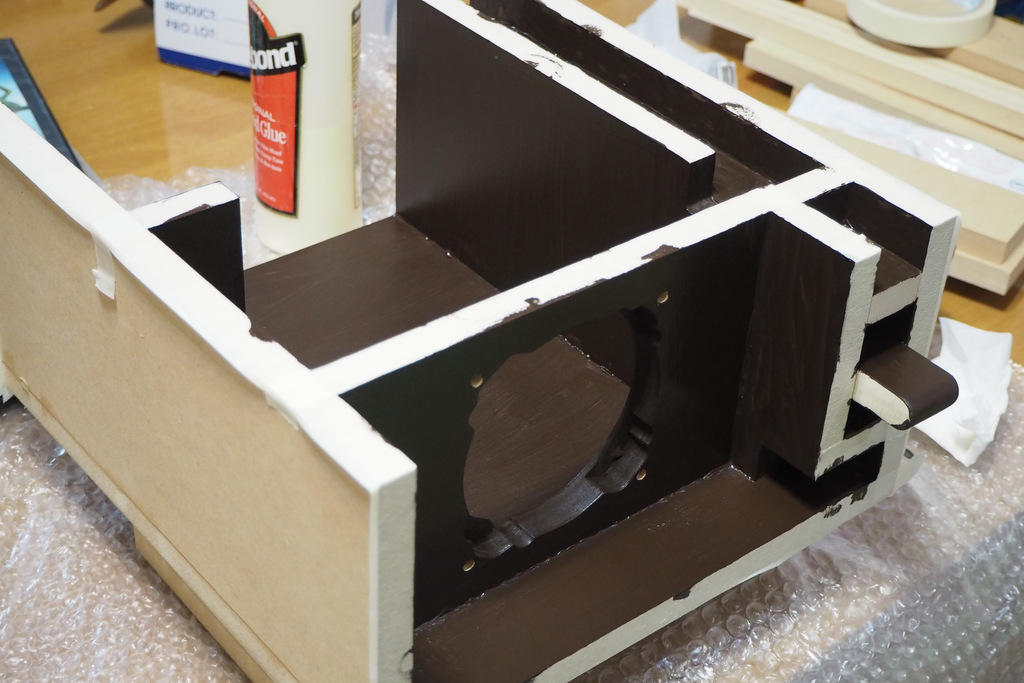最後にサブバッフル4番を接着して、箱の接着工程は完了です。