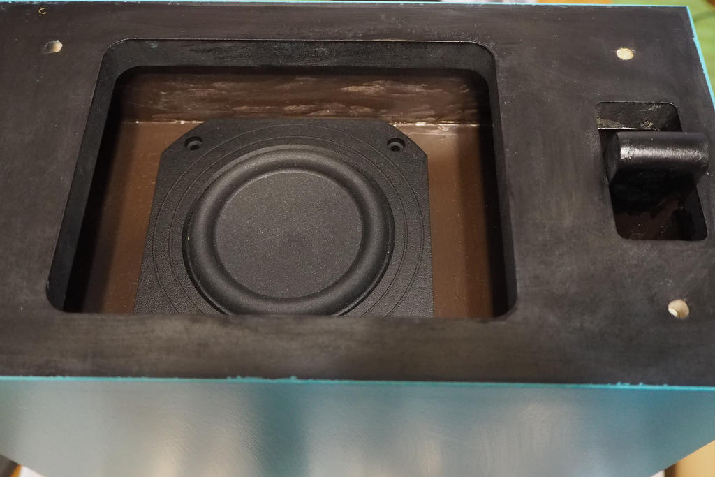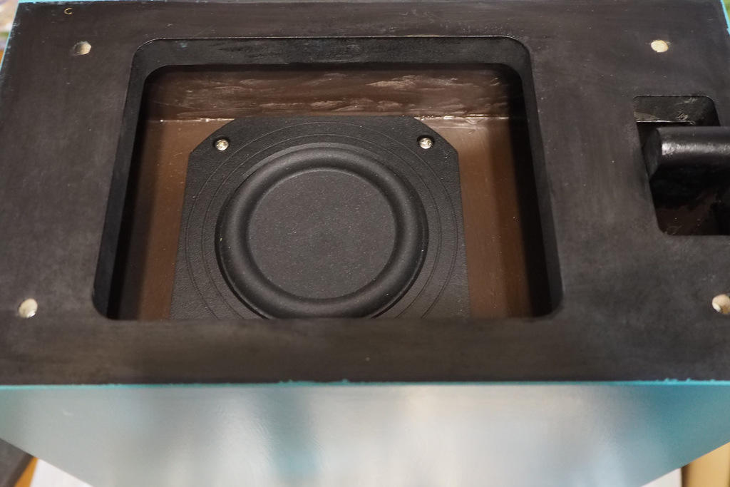 このタイミングで第1空気室にも吸音材を設置。四隅軽くで良いと思います。