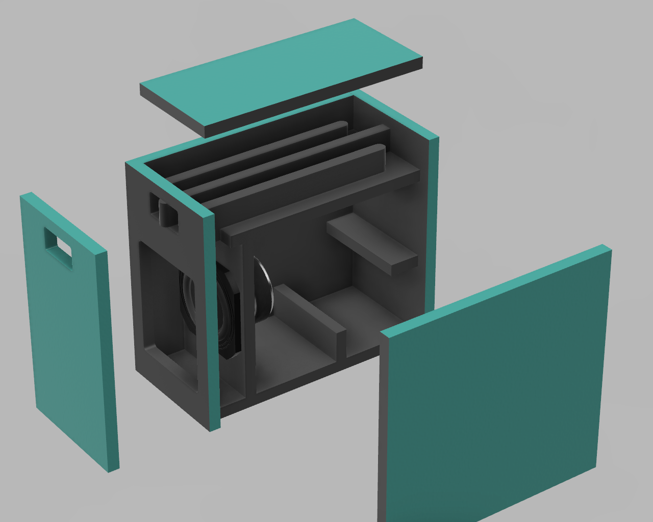 設計で苦労したのはやはりポート設計ですね。小容量な上にFpが極端に低いものだから、ダクトが常識はずれに長大になります。当然ながら内部で折り返さないと収まらない。こんな設計、誰もやらないと思います。流速が高くなるから、フルートノイズも凄そう。こんなもの、マトモに動くわけがない。期待半分不安半分で、設計が進むにつれ段々と自信が無くなってきます。こりゃ大失敗作じゃないのか。それでも、面白そうだから手は止まりません。