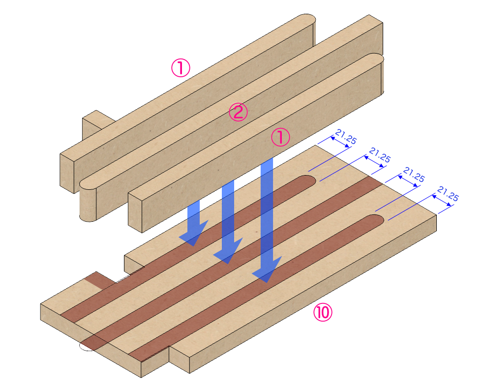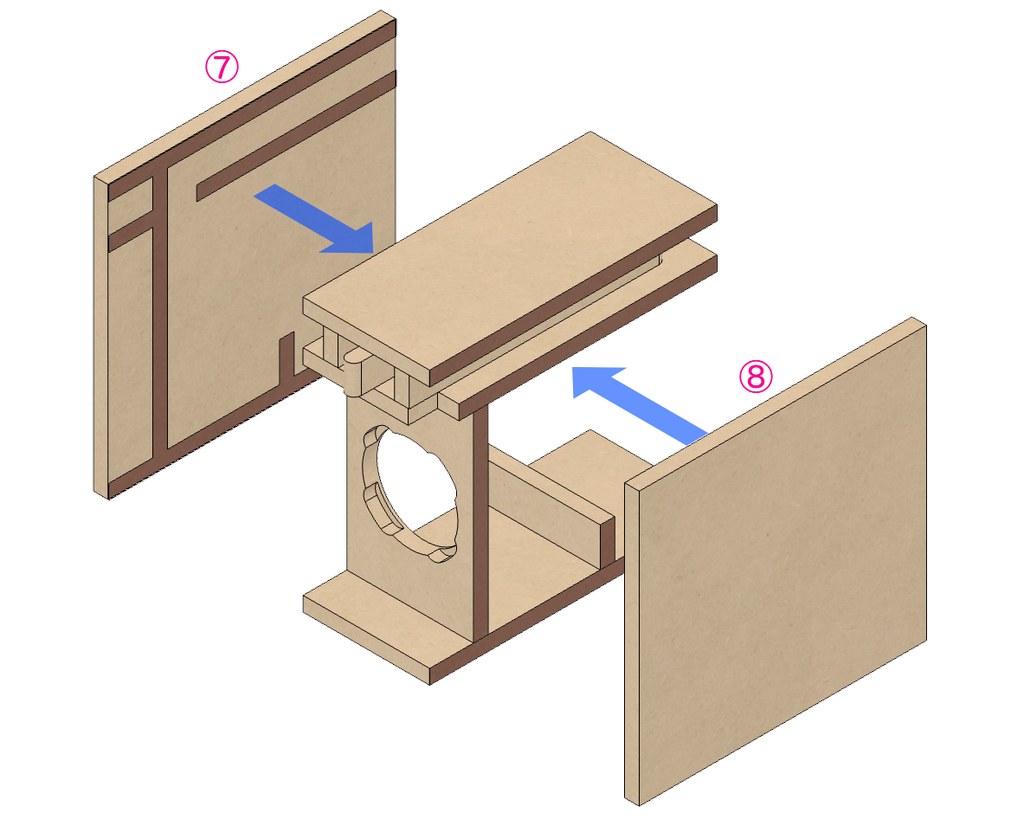 組み立ての工程は以下。LEGO風に図で説明します。