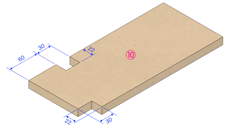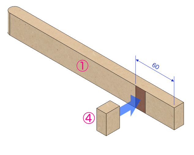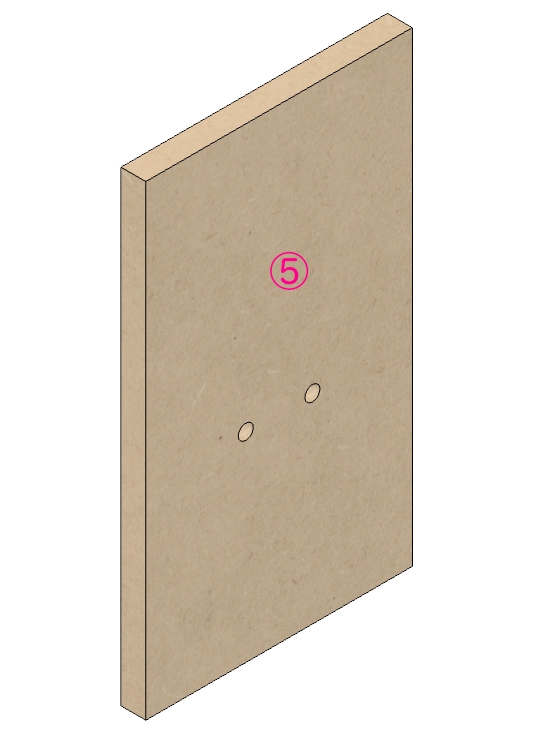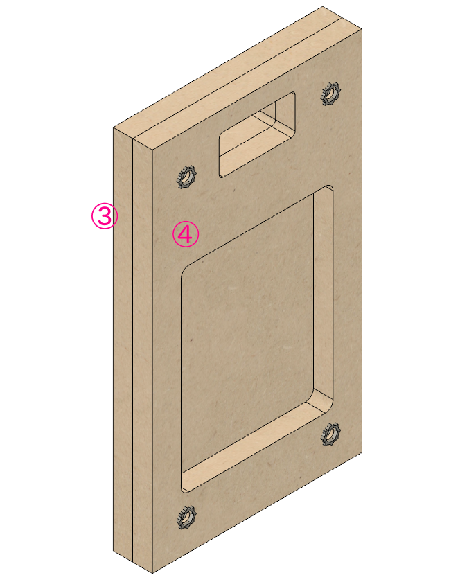 図示はしていませんが、この段階でドライバーのボルト穴も開けておき、裏側に鬼目または爪付きナットを打っておきます。