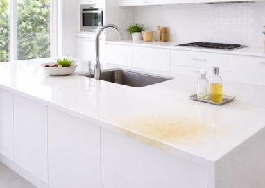 人口大理石のキッチンカウンターの黄ばみ対策