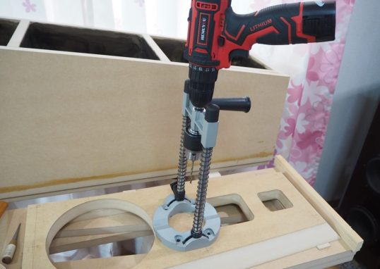 スピーカー工作、スピーカー自作、トリマー、接着、木工工作、治具